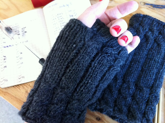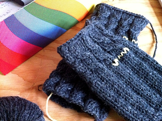Today I finally put the thumbs on your Fetching mitts. These took me forever because there was some kind of curse on me and/or the right mitt — kept having to redo it. In the end, I let a few tiny mistakes go, so please, as you’re examining my handiwork, just remember they were made with love!